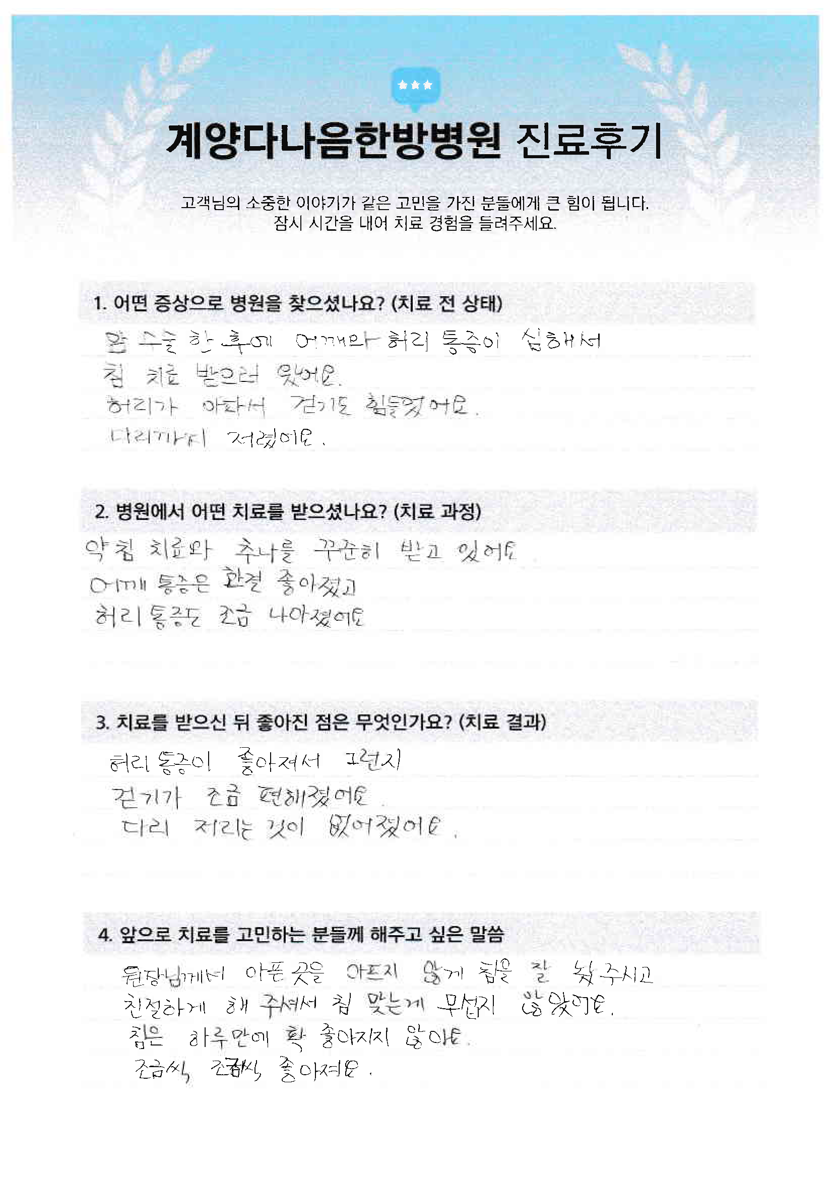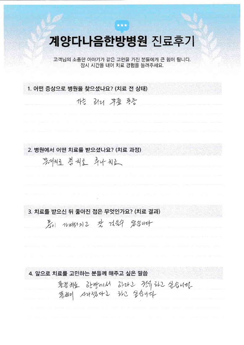 가슴 허리 무릎 통증(환자수기 일부)