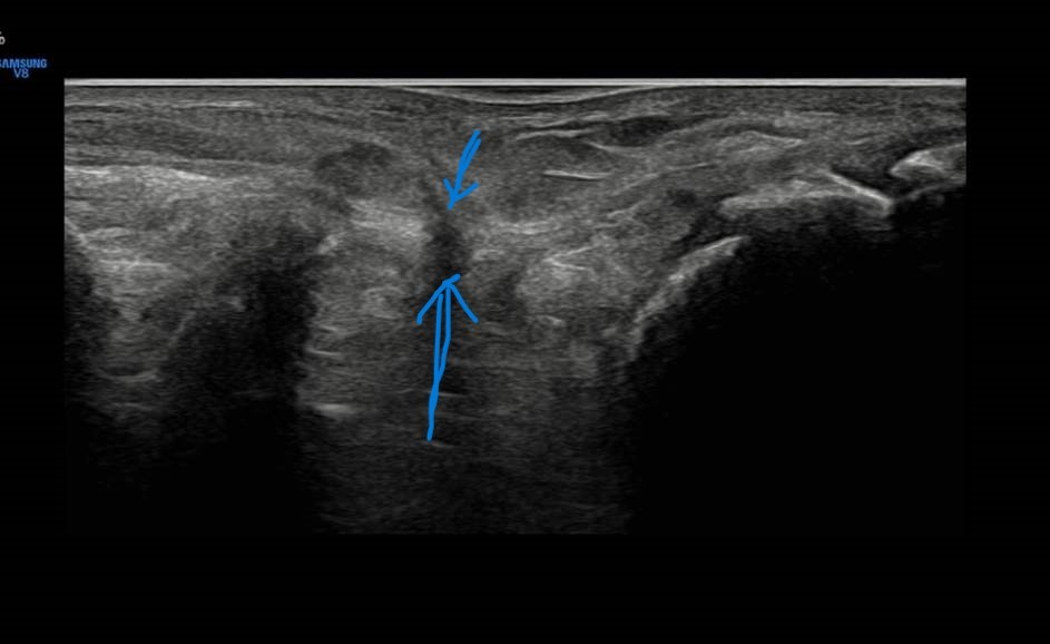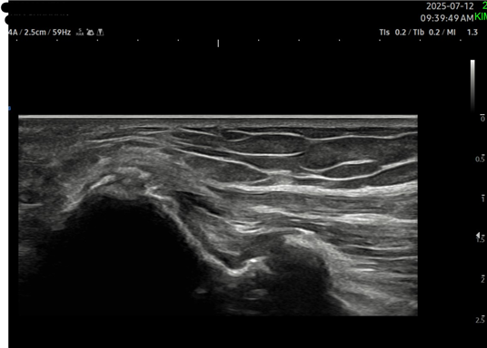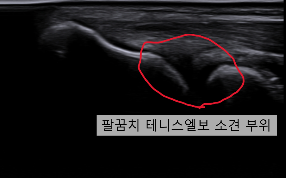 오른쪽 팔꿈치 통증 유발한 석회화 건염(50대)