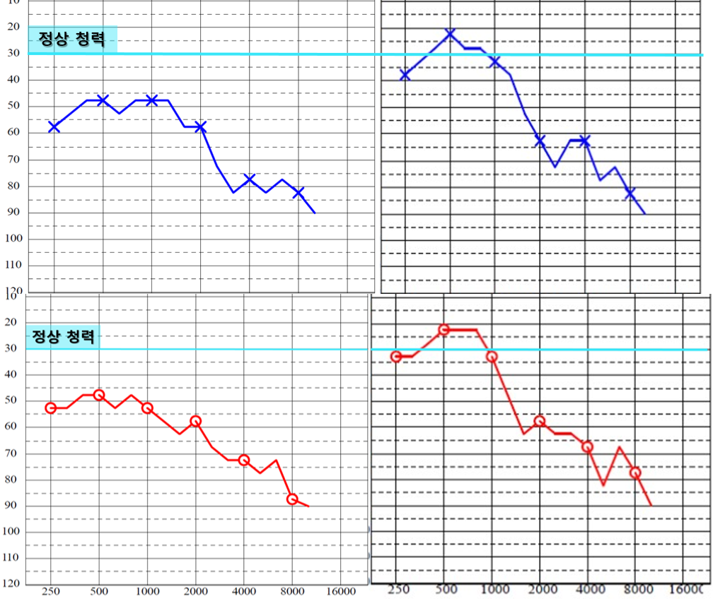 75세 좌우 난청 여성 2개월간 4회 치료. 정상 청력범위로 호전