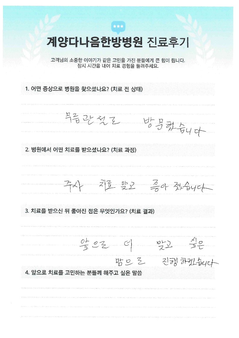 무릎관절 치료를 위해 내원(환자 수기)