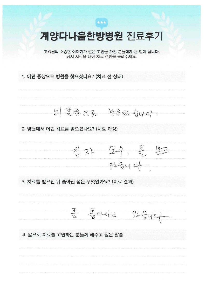 침구치료/부항치료/전기침 치료 후 호전 중