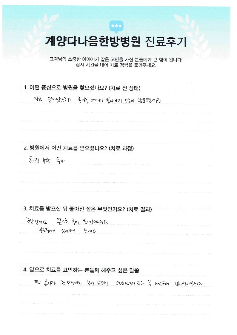 허리, 어깨통증으로 인한 치료차 방문(환자수기)