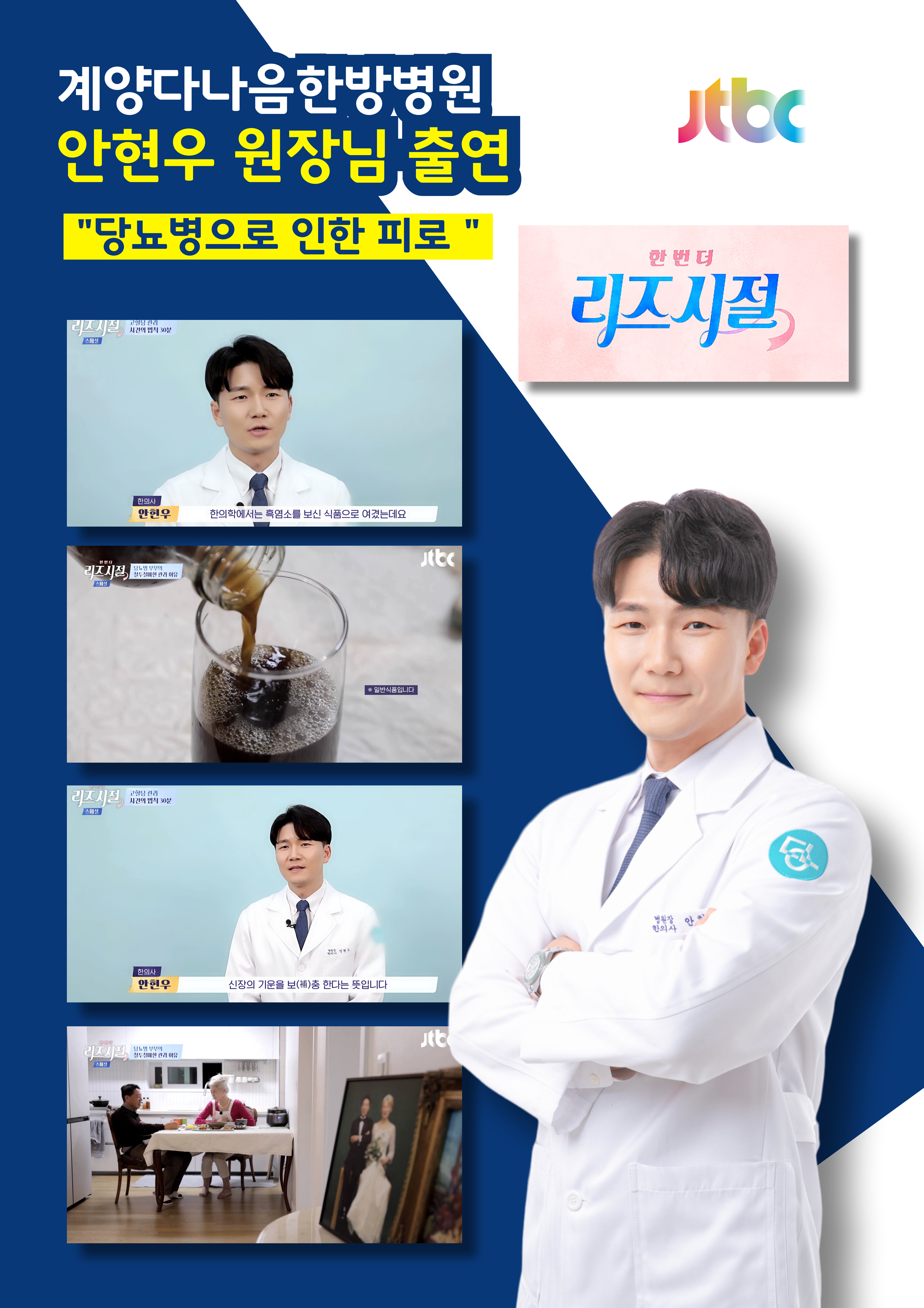 제목 JTBC 한 번 더 리즈시절 출연해 한의학의 혈당관리 등 소개한 안현우 병원장