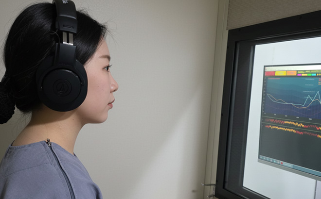 환자가 듣는 이명 소리의 주파수와 강도를 정확하게 측정하고, 뇌가 어떤 소리에 민감하게 반응하는지 객관적으로 파악합니다. 환자분이 듣는 이명소리를 100% 똑같이 재현하여, 치료 계획과 치료 전후 변화를 과학적으로 확인합니다.