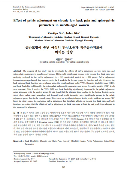출처 | 골반교정이 중년여성의 만성요통과 척추골반지표에 미치는 영향