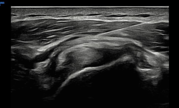 오른쪽 팔꿈치 통증 유발한 석회화 건염(50대)