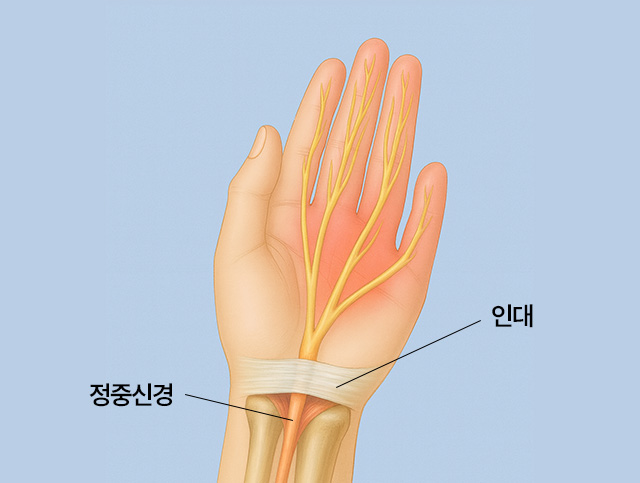 손목의 뼈와 인대로 구성된 터널 형태 조직이 퇴행성 변화로