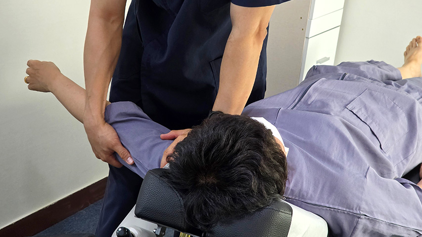 경험 많은 한의사가 수기로, 손에서 팔, 경추까지 연결부위의 교정,