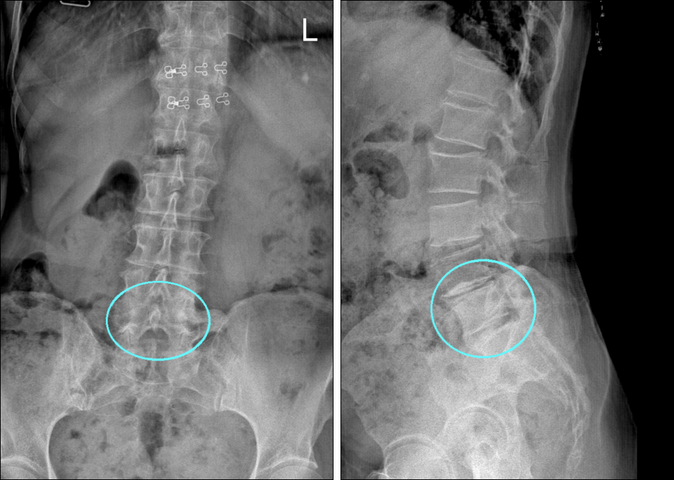 요추 4-5번, 요추 5-천추 1번 간격이 좁아지고